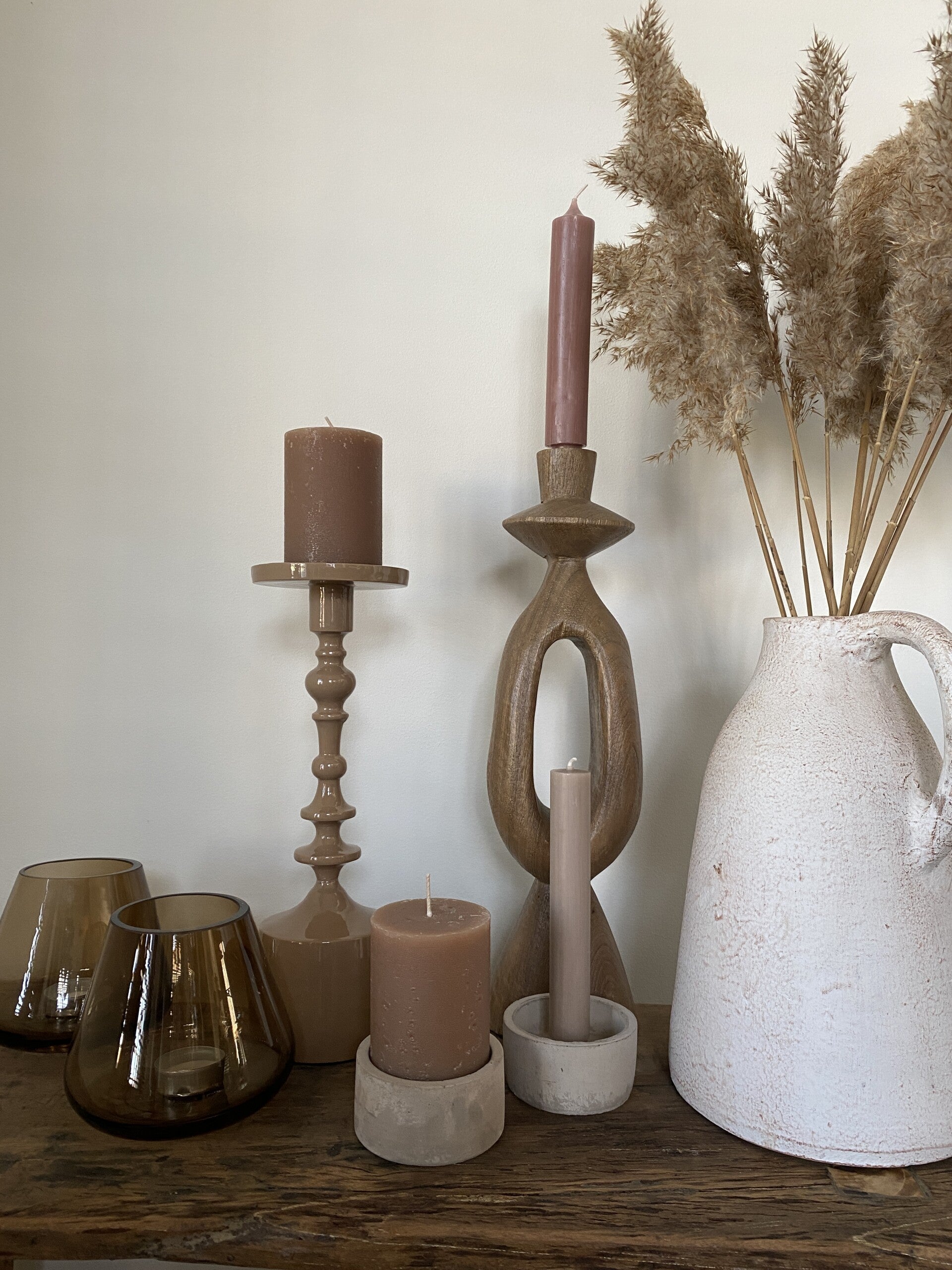 Prachtig in combinatie met de metalen pastel kandelaars of de terra betonnen kandelaars, te vinden in de webshop.