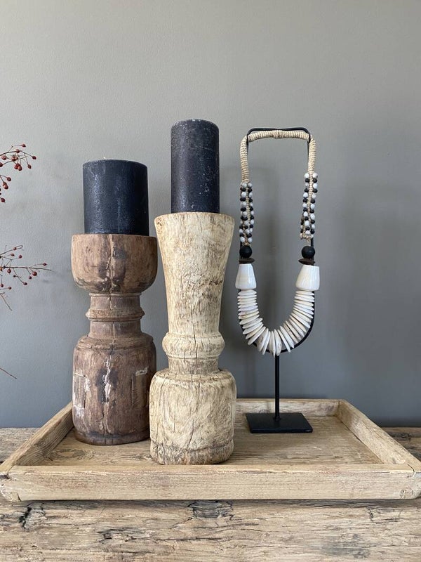 Prachtig oud houten dienblad. Super om je kandelaars op te zetten in combinatie met bijvoorbeeld een schelpenketting. Ook leuk om op je aanrecht neer te zetten met koffiekopjes of de mooie flessen olijfolie.